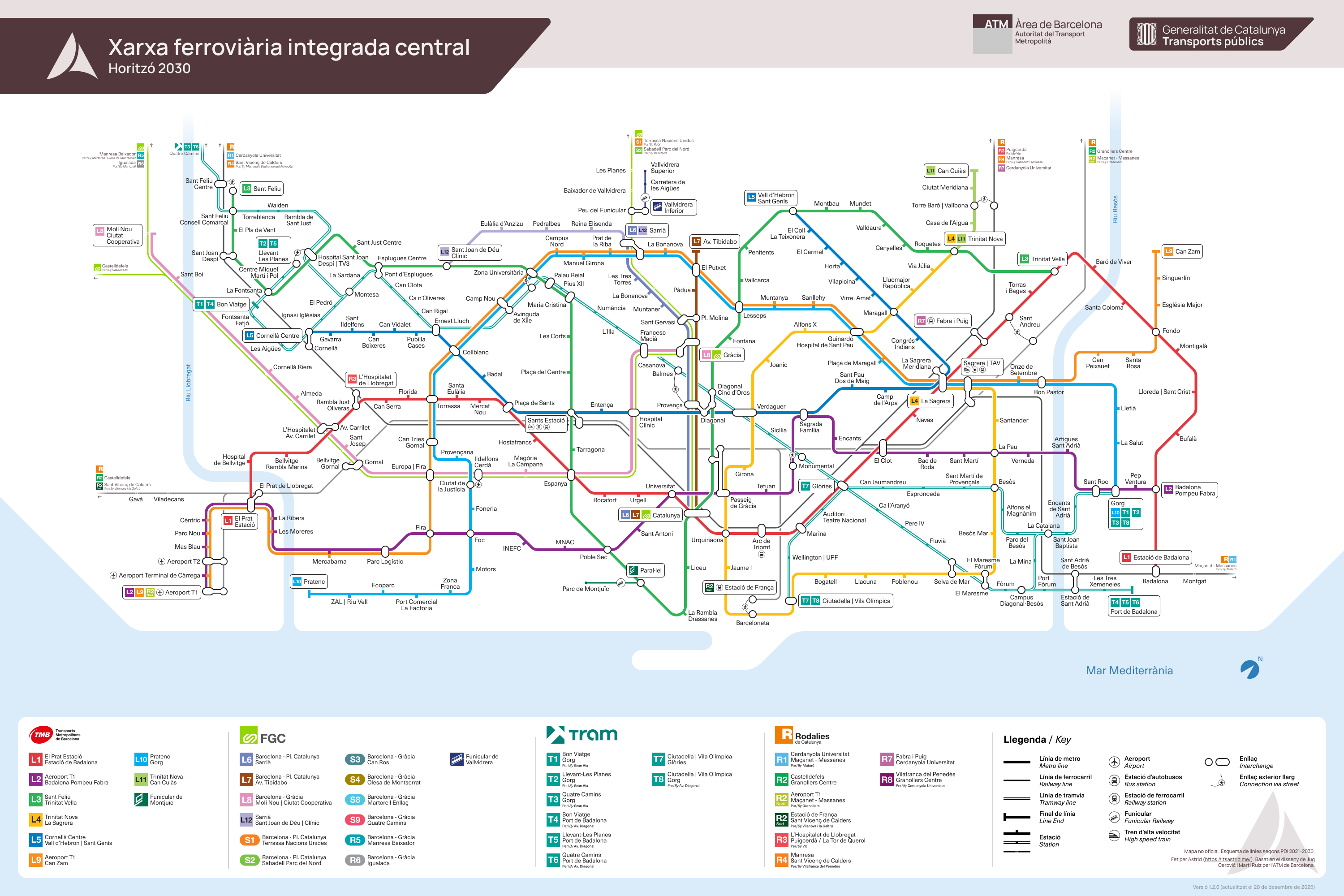 The current integrated rail map of the Barcelona area, made by Jug Cerović and Martí Ruiz in 2023, looks very clean and balanced. In contrast with the old version of the same map, rapid transit takes the highlight in the center, as opposed to regional rail in the old version.